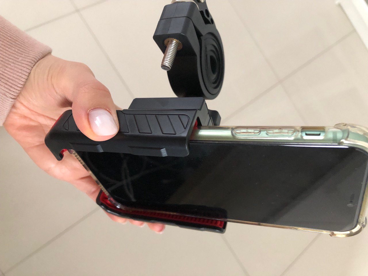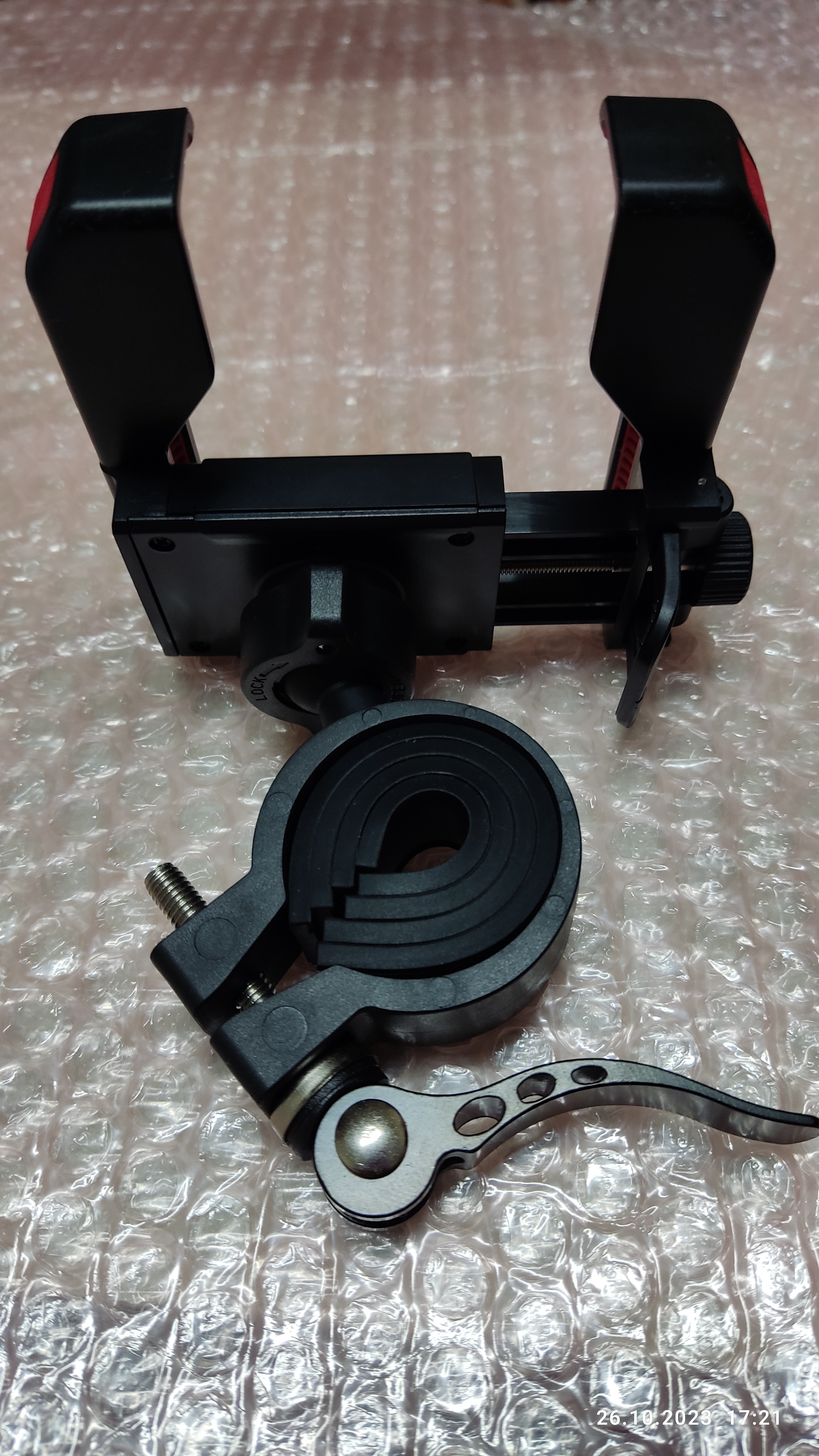 Great holder. The quality of plastic and casting is just great, no bum and no influx. The grip of the smartphone is strong but gentle. No frills. Pleased with the quality of silicone in the landing window. The thread of the pulling screw is perfectly made, even there is no burrs. One of the sides is spring-loaded and as soon as you unscrew the screw to expand the smartphone installation window, it smoothly moves away. And, probably, the most important thing is that the holder does not close the smartphone camera and allows you to calmly undo it. Beyond praise! Very good. Recommend!