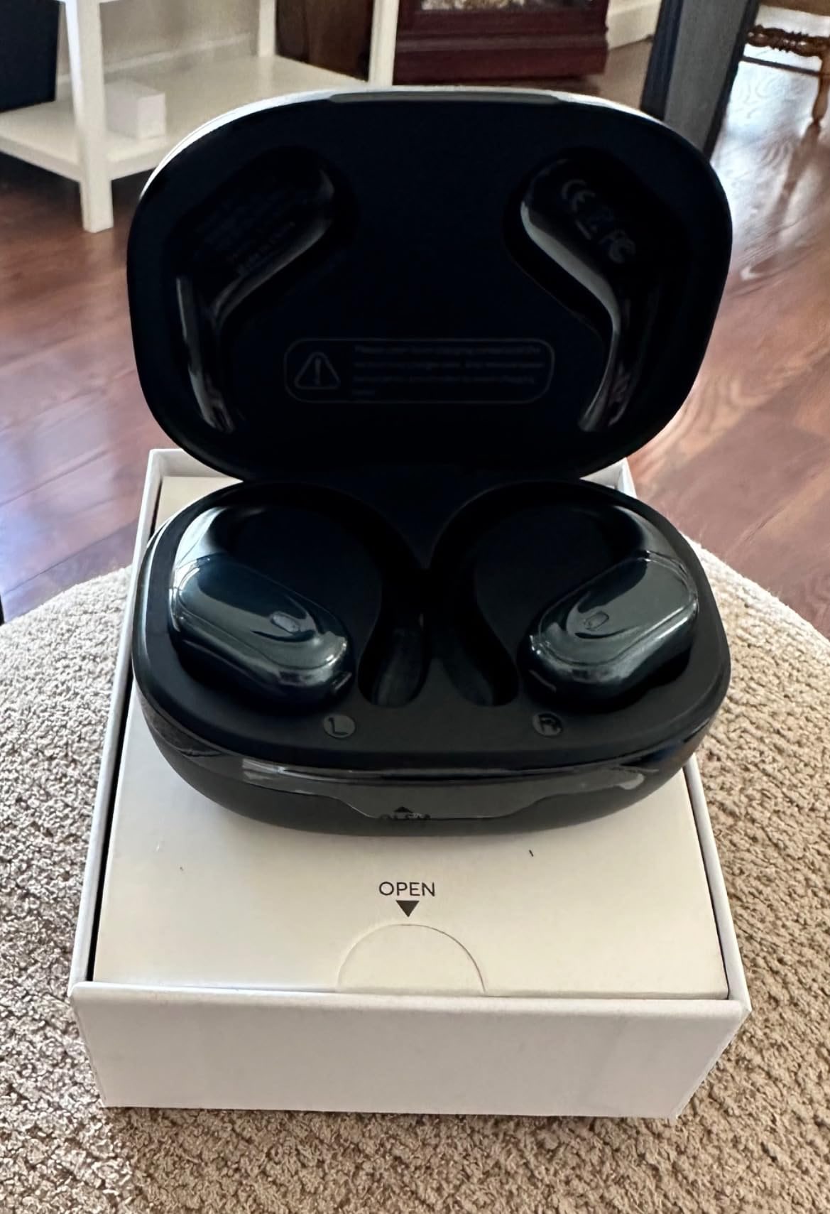 Exactly like the photo. Very comfortable to wear. I need to try them while running later. Easy to pair with phone. Sounds are good to me. Like the display on the charging case...