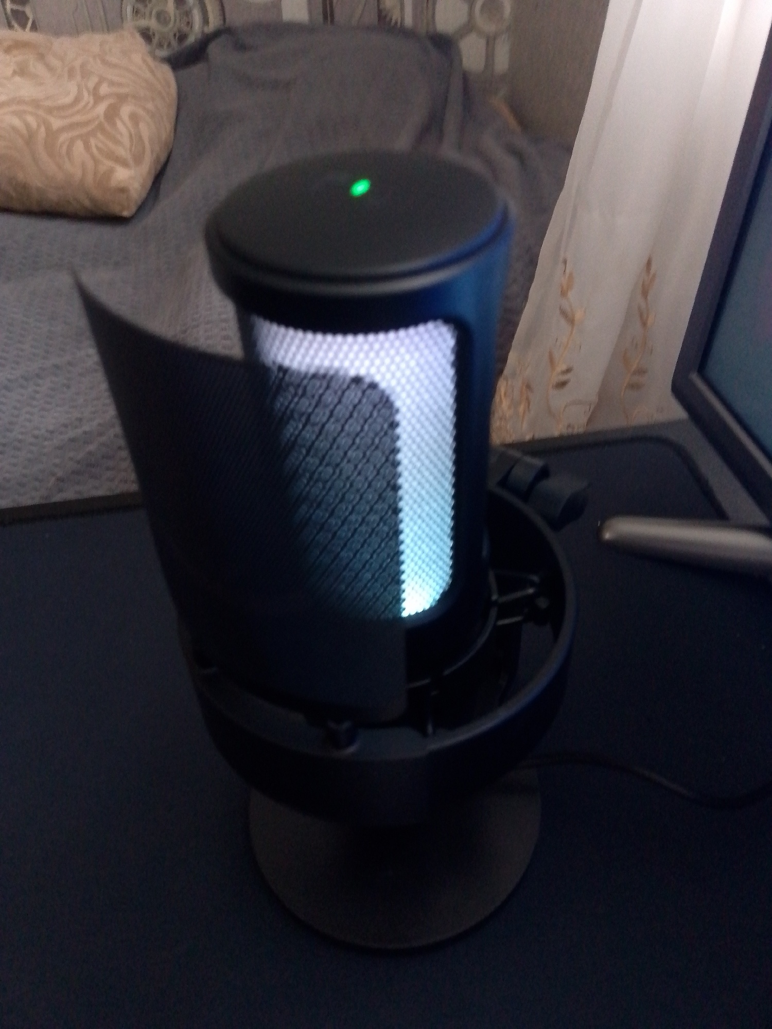 The goods arrived quickly. All whole. The packaging is not crumpled. The microphone is good. Took it out of the box. Plugged in. I downloaded all the drivers myself. Ready to work. (the main thing is PC do not forget to reboot after installing the drivers). Took with their own kranstein. Everything is fine. Satisfied with the purchase.