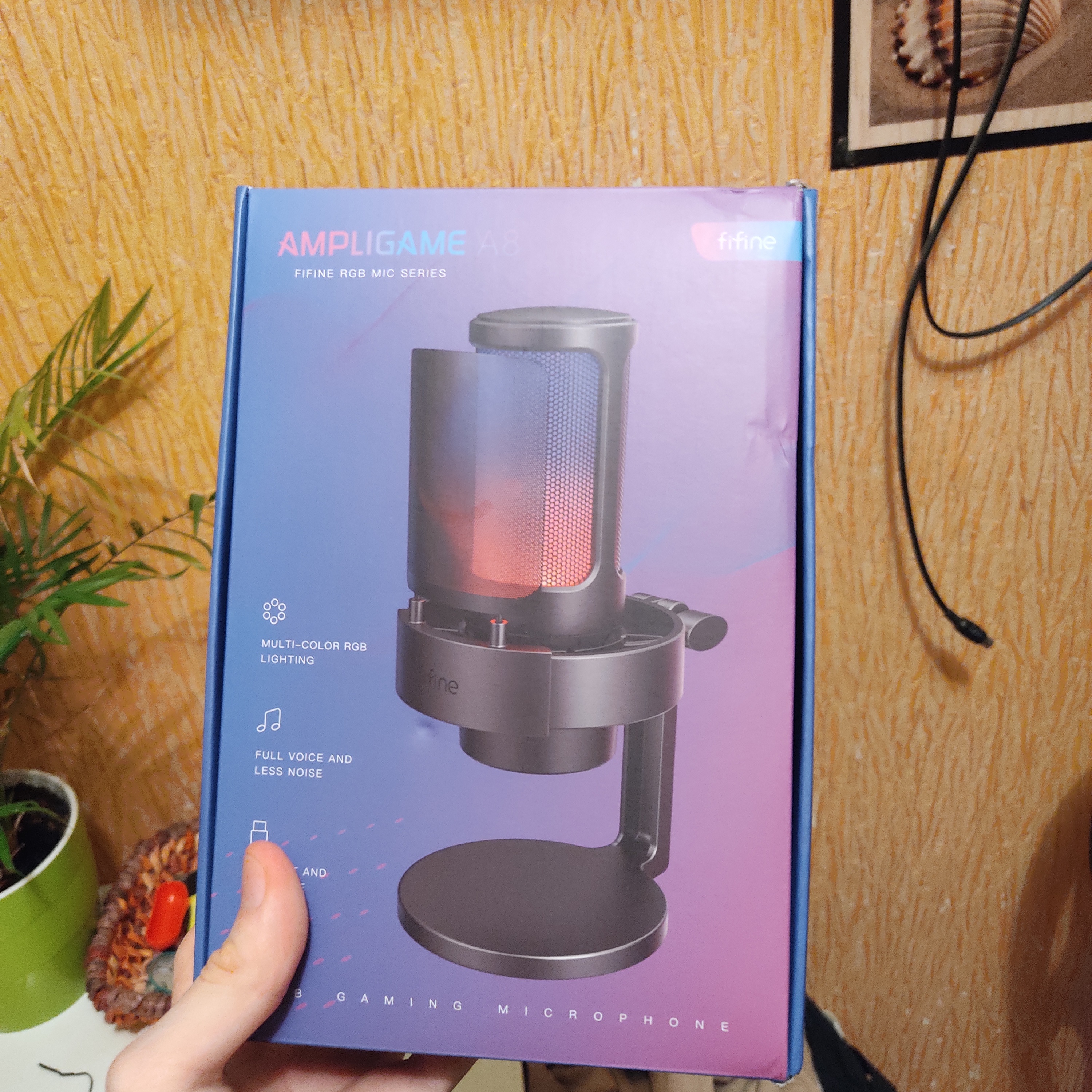 The microphone is super, it came in about a week, but the mount is slightly scratched, which clings to the noise and the box is slightly crumpled, but it is not critical to use, as soon as I bought it immediately became cheaper by 700 p, of course it all spoils the overall picture a little, so 5 stars the hand does not rise to put