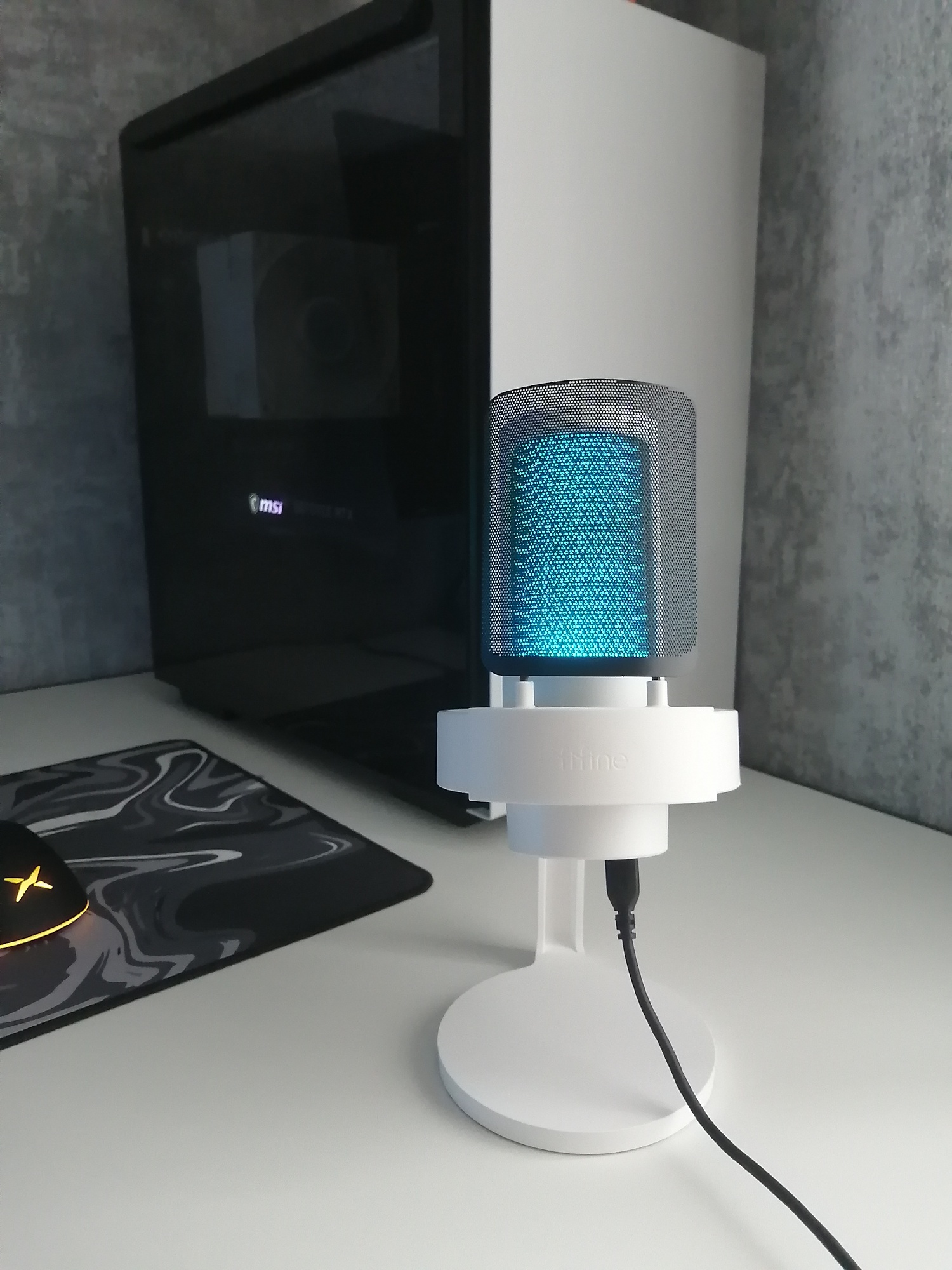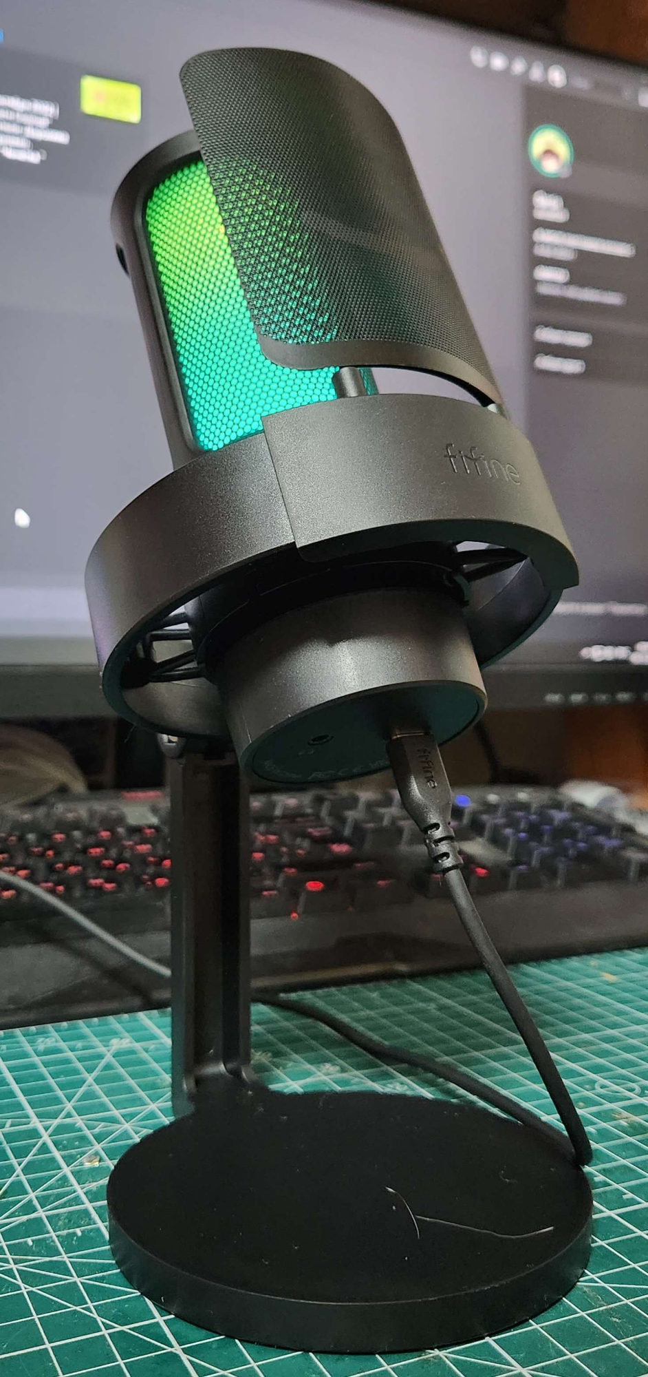 The microphone came quickly. The stand at the counter is rubberized. When connected, everything was quickly determined, then for about 5 minutes I could not understand why I could not hear myself, I thought I did not make some settings until I saw that there is still a twist for volume behind the microphone, which was at least twisted. Noted in the photo. Recorded the sound all well, sounds from neighboring rooms, if children are playing there, you can also hear if a microphone is directed there, I am satisfied with the purchase.