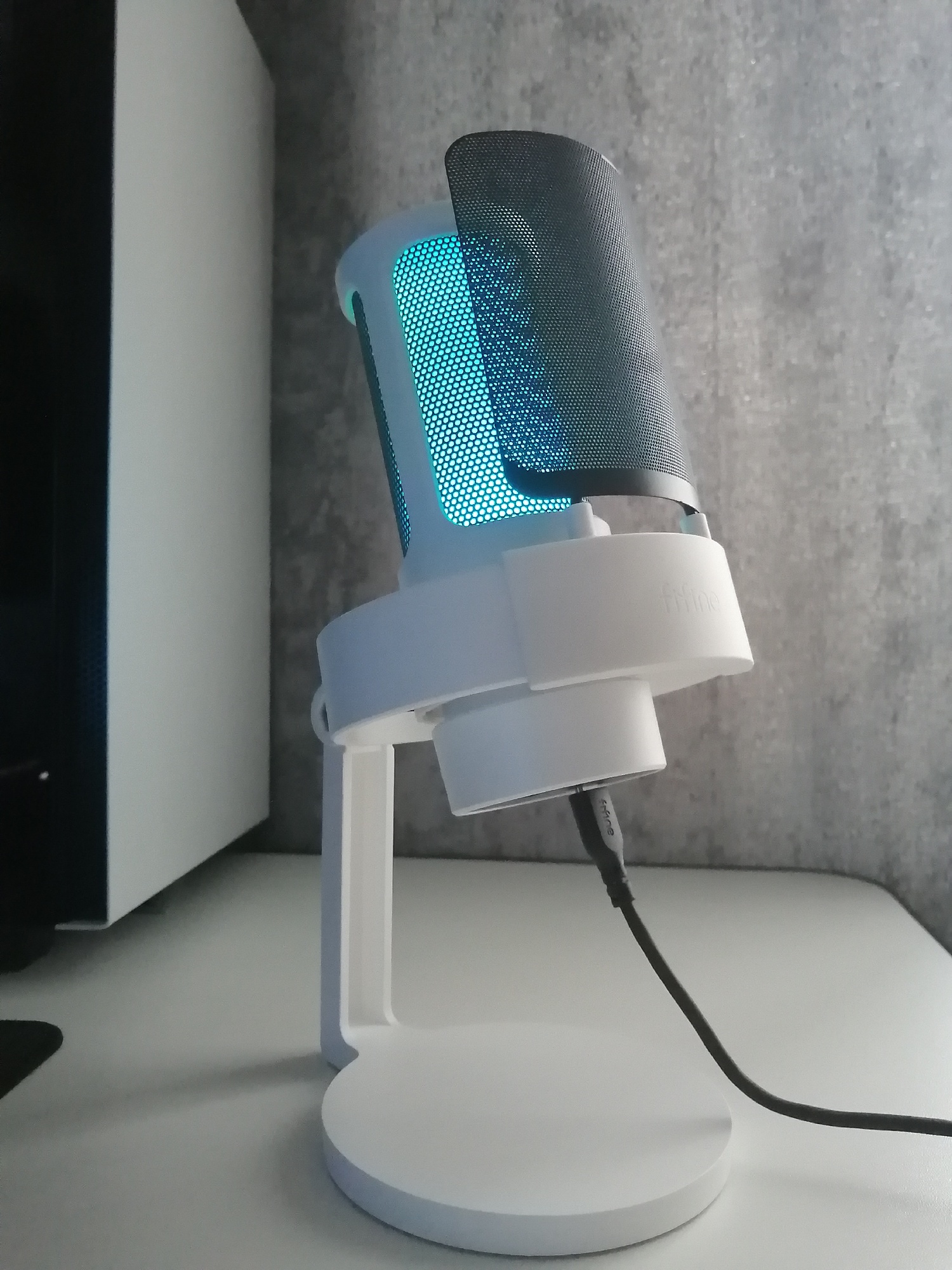 The first impression of the microphone is chic. Delivered on time (even a day ahead of schedule). The box was slightly scuffed on the outside, but inside the device is perfectly preserved. Outwardly, the microphone looks great, feels also pleasant. The stand is sturdy and the wire is long enough to stretch across the table. Sound is also very good. The microphone is far enough away from me, but it still perfectly picks up my voice. The people who heard me through the new Micro are highly appreciated. While the first day of use, but the impressions are wonderful. I hope it will last long and great)))