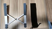 Streamline Your Desk with the Sleek Aluminum Stand – perfect for MacBook, tablet, and phone. Foldable, space-saving, and stylish.